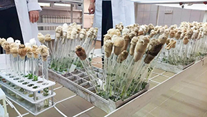 Лаборатория агротехнологий «Вилга» тесно сотрудничает с лабораторией биотехнологии растений ОКНИ КарНЦ РАН. В числе ее направлений работы – хозяйственно-биологическая оценка сортов ягодных культур и разработка технологии ускоренного получения высококачественного посадочного материала. Данная методика предполагает как вегетативное размножение, так и клональное микроразмножение плодово-ягодных культур. Сейчас в культуре in vitro («в пробирках») поддерживается 10 сортов жимолости синей, 10 сортов малины, 2 сорта ежевики и 3 сорта актинидии коломикта, которую также называют северным киви. Использование методов микроклонального размножения позволяет ускорить получение посадочного материала, свободного от инфекций.
