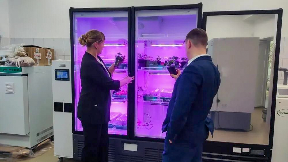 О работе лаборатории агротехнологий рассказывают главный научный сотрудник Лабовь Евстратова и младший научный сотрудник Александра Камова
